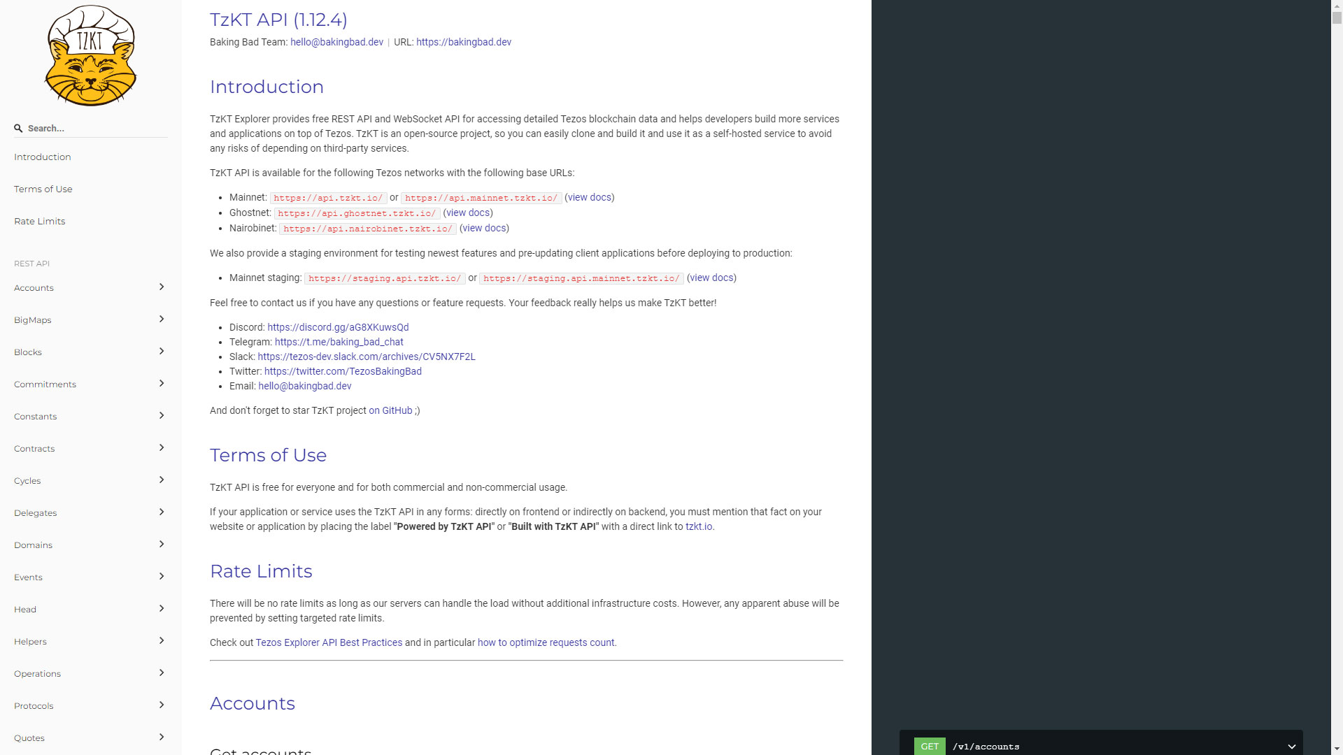 API: Leads to the powerful API sub-site, where all API documentation is located, free for use by Tezos developers.